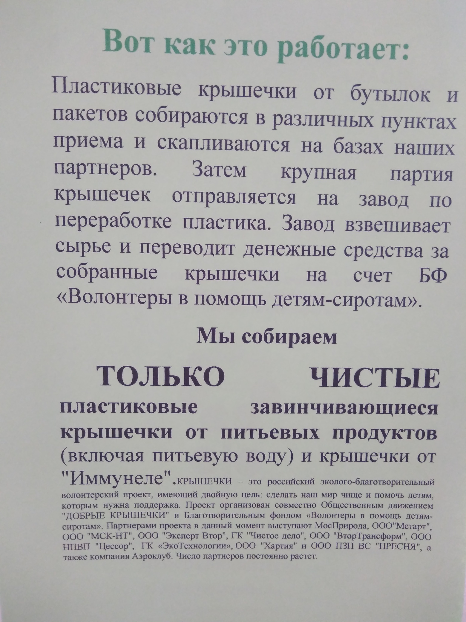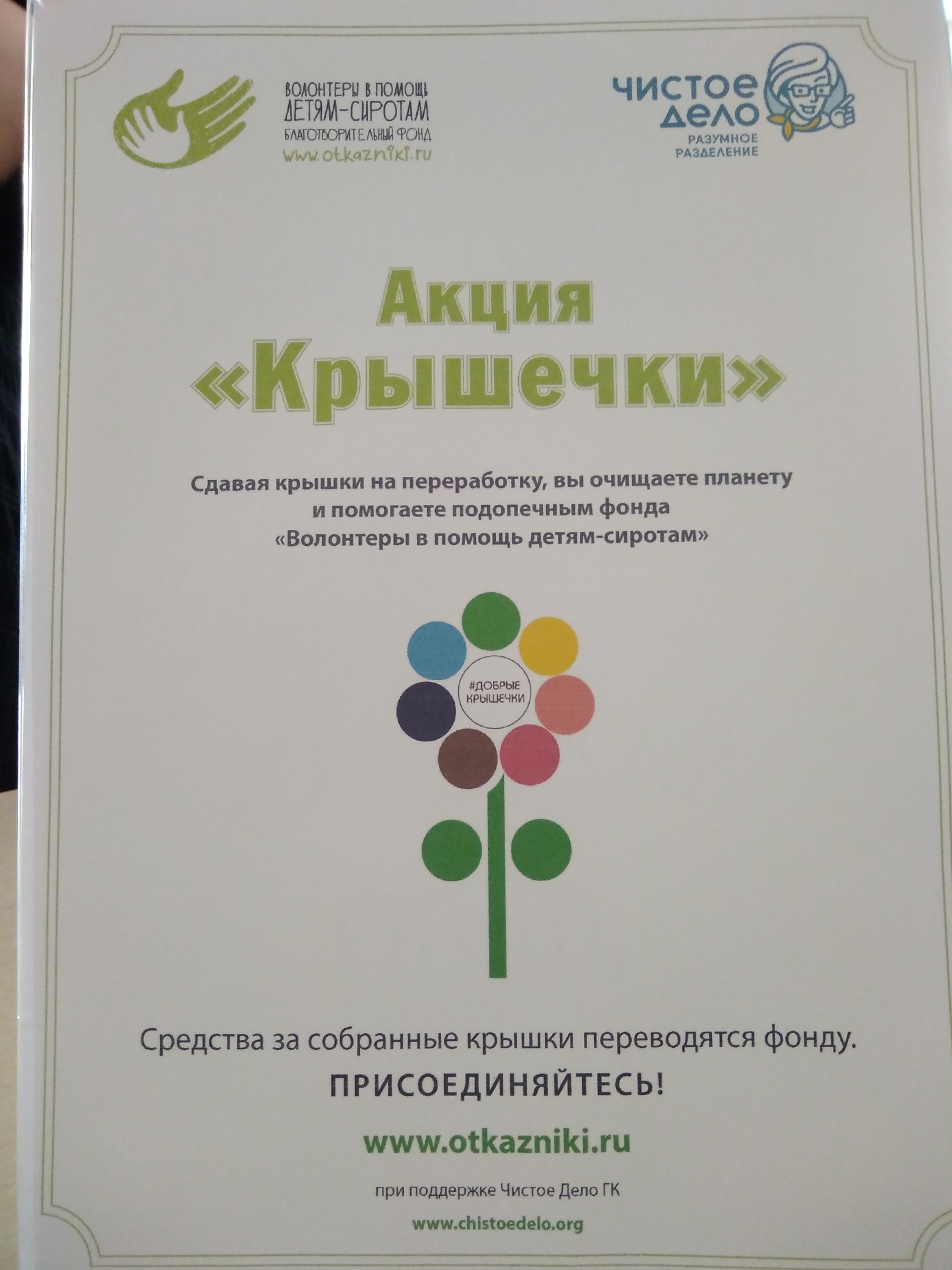 МБДОУ №69 городского округа Мытищи присоединился к российскому эколого-благотворительному волонтёрскому проекту, организованному Общественным движением "ДОБРЫЕ КРЫШЕЧКИ" и Благотворительным фондом "Волонтёры в помощь детям-сиротам"