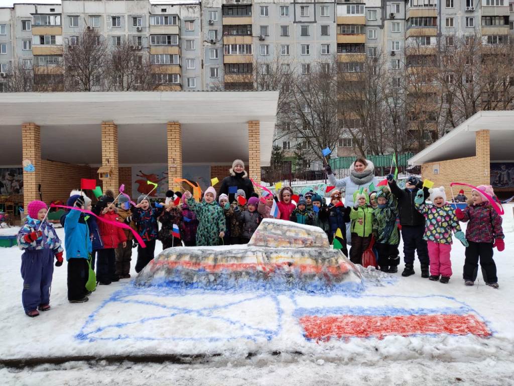 "Я папу люблю и его непременно поздравить хочу в этот праздник военный". Ребята средней группы МБДОУ 69 "Золотой ключик" городского округа Мытищи