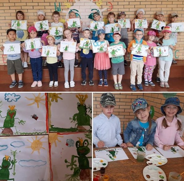 "Неделя сказок" в МБДОУ 69 "Золотой ключик" городского округа Мытищи. Старшие ребята рисовали Царевну - лягушку. Воспитатели Артеменко Г.Ф. и Свистунова Е. А.