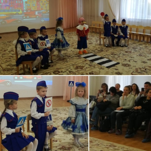 Отряд "Юный пешеход" МБДОУ69 городского округа Мытищи выступил с инсценировкой сказки "Буратино в стране дорожных знаков" перед родителями воспитанников