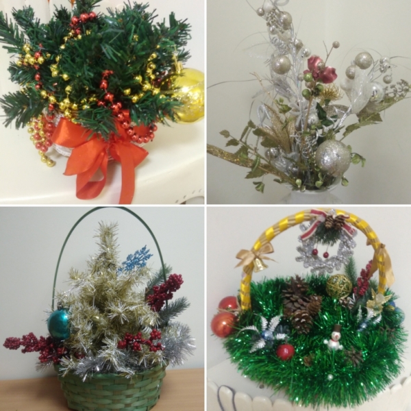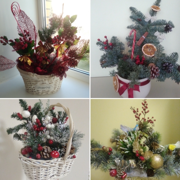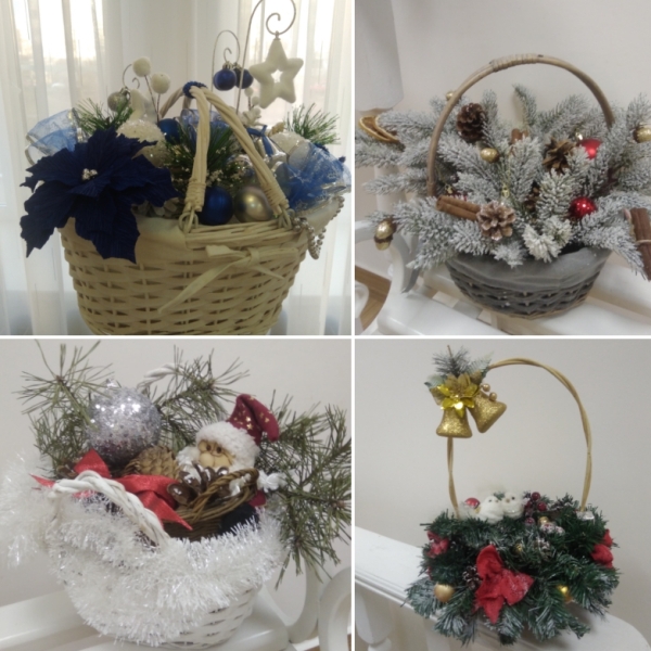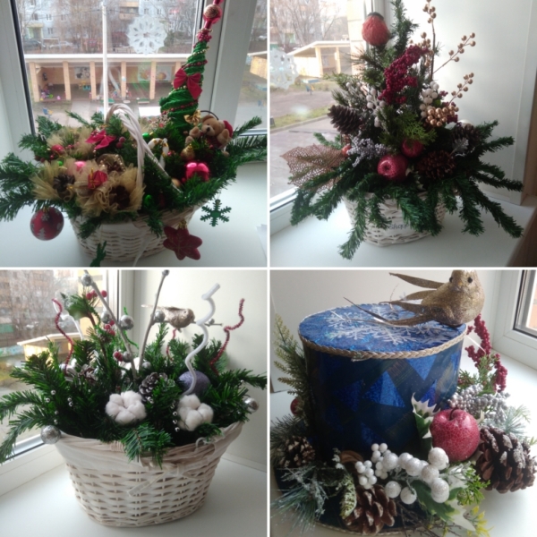 Выставка творческих работ детей и родителей "Новогодняя корзинка" проходит в детском саду