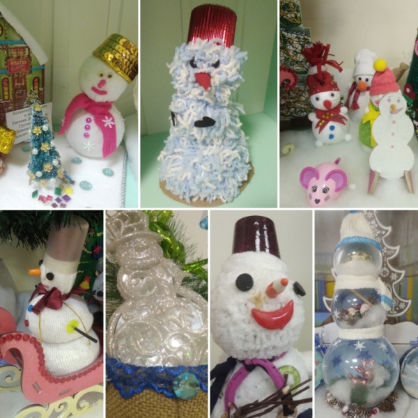 Выставка творческих работ детей, родителей и педагогов "Парад снеговиков" радует в этом году высокой активностью участников и разнообразием техник исполнения