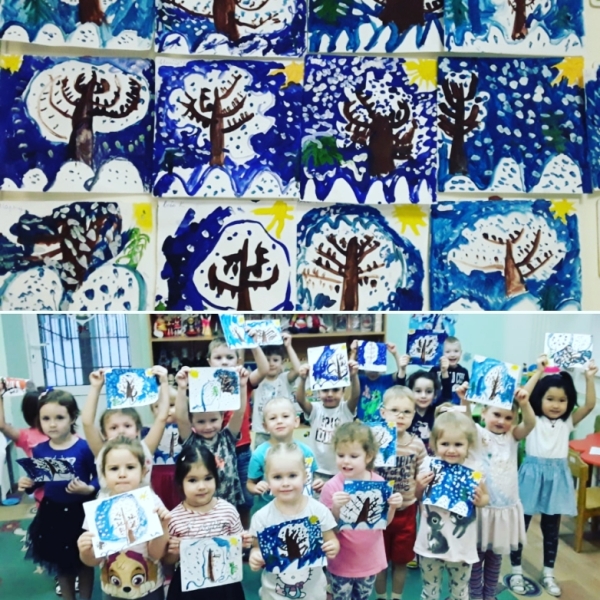 Художники-натуралисты средней группы МБДОУ 69 "Золотой ключик" городского округа Мытищи вдохновились выпавшим снегом и нарисовали целый лес заснеженных деревьев