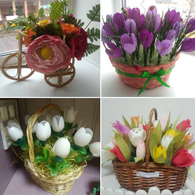Выставка творческих работ детей, родителей и педагогов "Букет для мамы" проходит в МБДОУ 69 "Золотой ключик" городского округа Мытищи