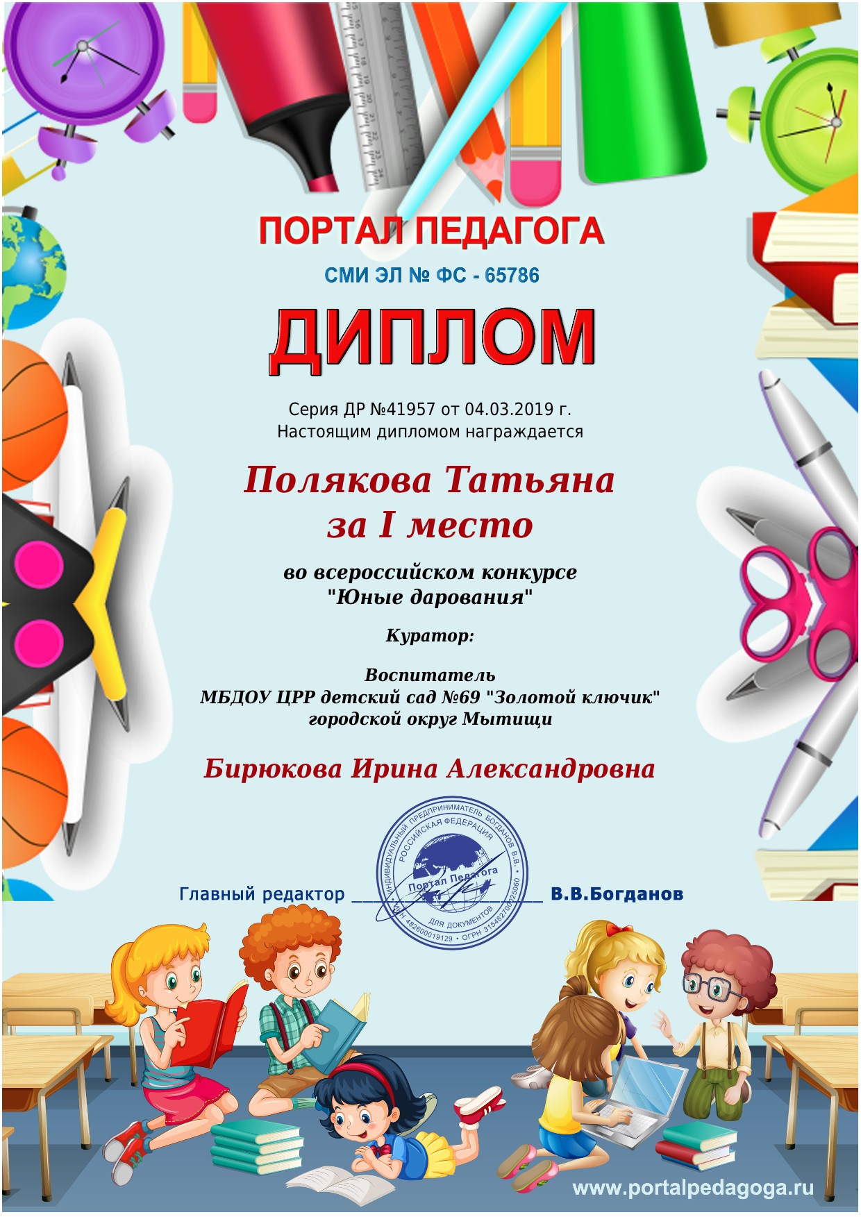 Всероссийский уровень: 1. Конкурс детского творчества «Юные дарования»