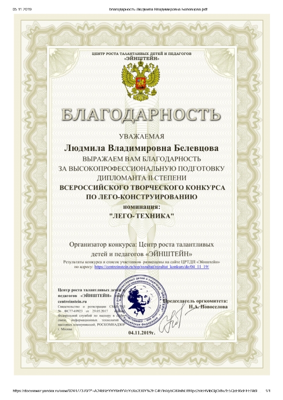 БЕЛЕВЦОВА ЛЮДМИЛА ВЛАДИМИРОВНА