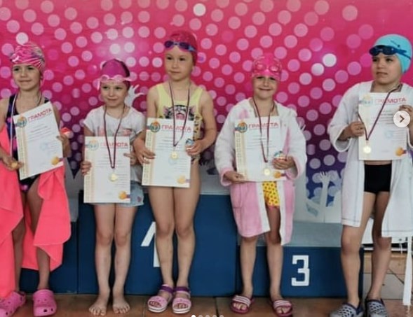 Спортивные достижения воспитанников МБДОУ 69 "Золотой ключик" городского округа Мытищи. Сутягина Анна и Горбачев Дамир приняли участие в соревнованиях по плаванию. Инструктор Лукина Т. А