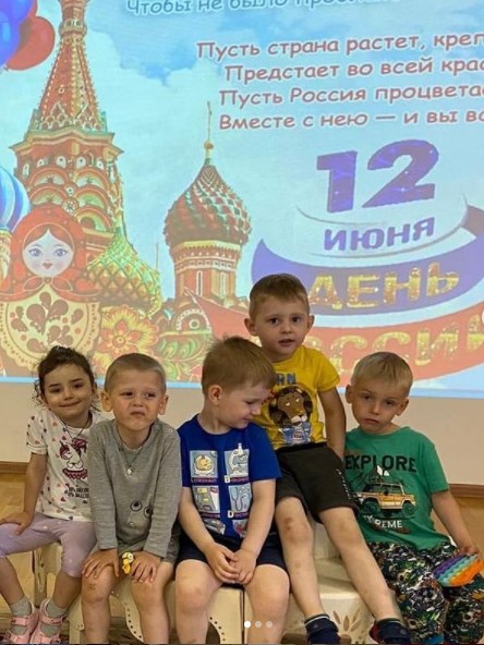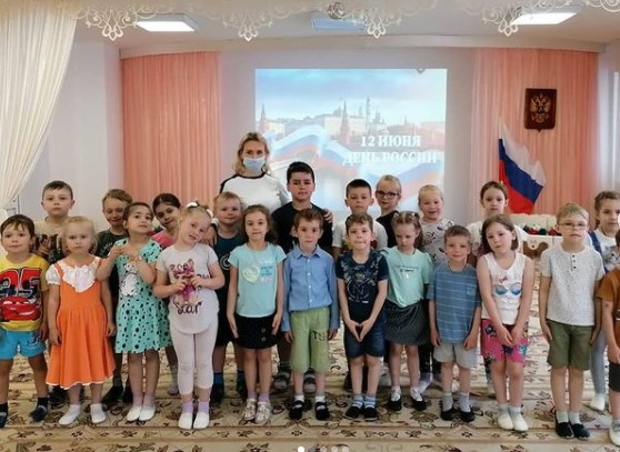 С Праздником, с Днем России, праздником национального единения и общей ответственности за настоящее и будущее нашей Родины. На фото группа №7, воспитатель Бирюкова И.А., музыкальный руководитель Жукова Е.В.