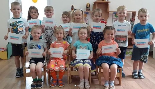Ребята группы "Карапузики" МБДОУ 69 "Золотой ключик" городского округа Мытищи тоже отмечают День России. Воспитатель Санько Н. А.