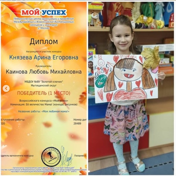 Ребята группы "Звездочки" МБДОУ 69 "Золотой ключик" городского округа Мытищи приняли участие в конкурсе детских рисунков к Дню матери. Воспитатели Каинова Л. М. и Филатова З. С.