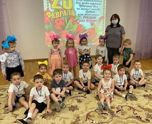 Малыши группы "Ягодки" МБДОУ 69 "Золотой ключик" городского округа Мытищи приняли участие в досуге, посвященном Дню защитника Отечества. Воспитатели Кашпарова О. И. и Григ А. К.