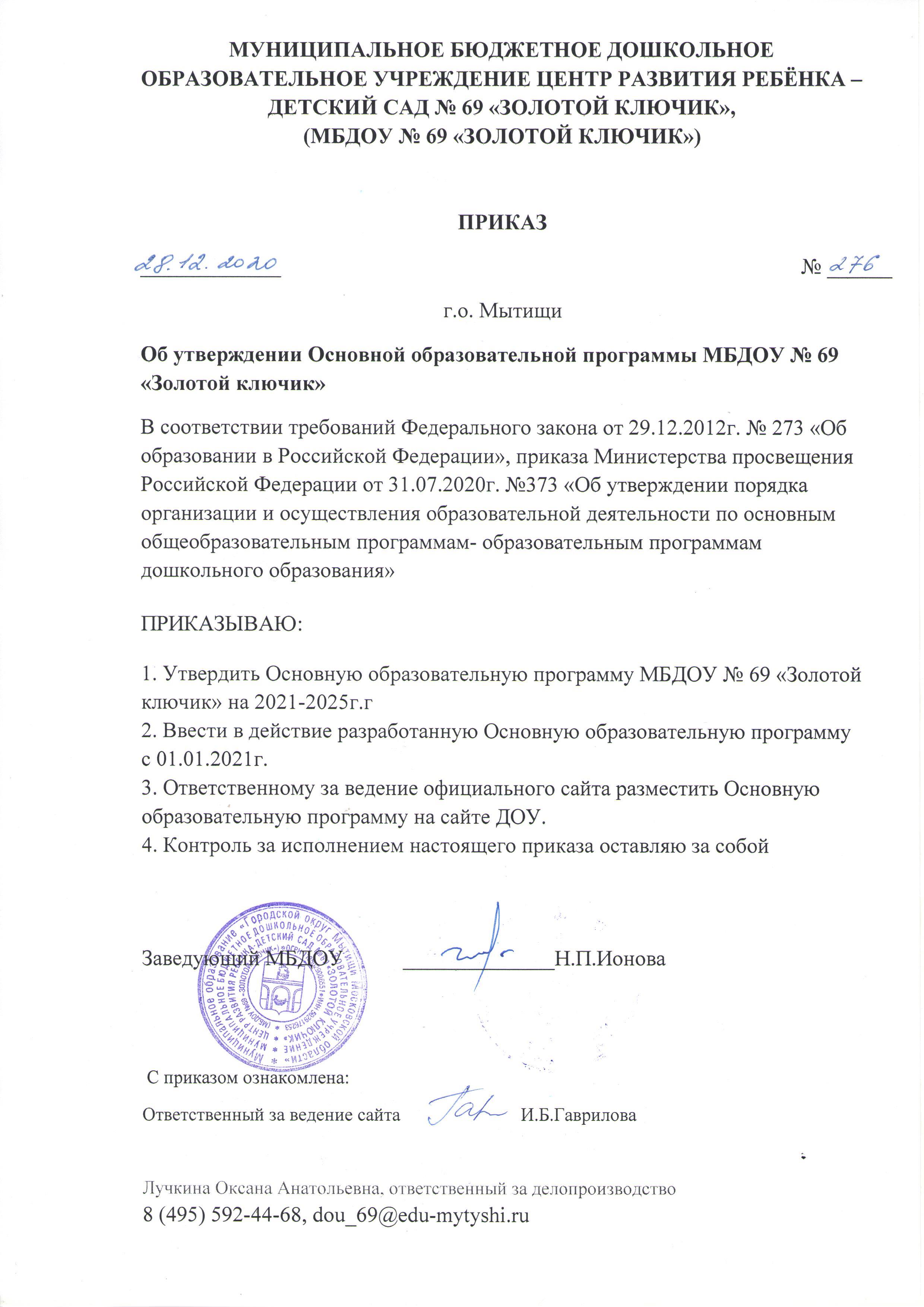 Приказ по основной образовательной программе ДОУ (копия документа)