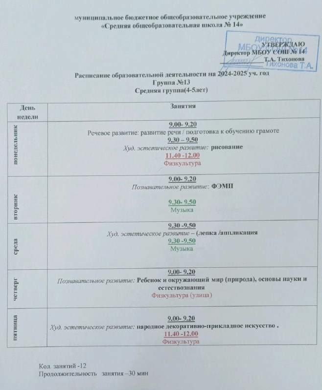 Расписание образовательной деятельности