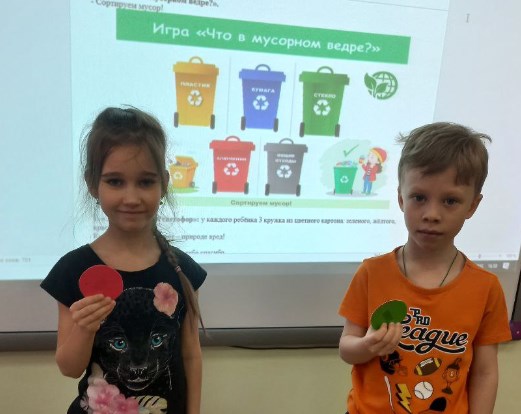 Для ребят воспитателем и орлятами-наставниками были приготовлены загадки, занимательная игра «Экологическая ромашка», где предлагалось выявить экологические ошибки, игра «Экологический светофор».