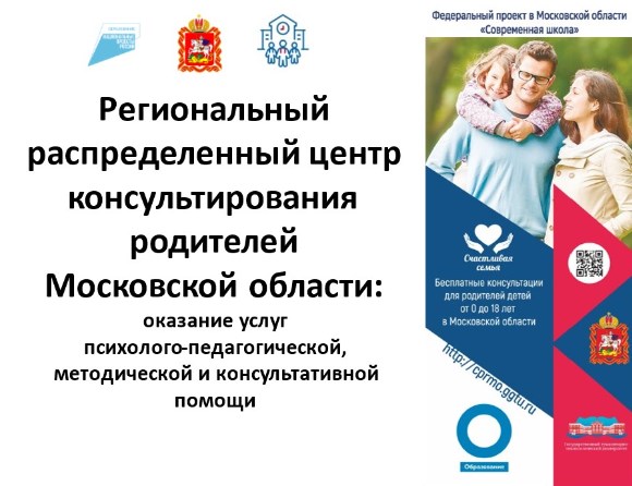 Федеральный проект «Современная школа» осуществляется в рамках национального проекта «Образование». Мы являемся региональным распределенным центром консультирования родителей Московской области.
